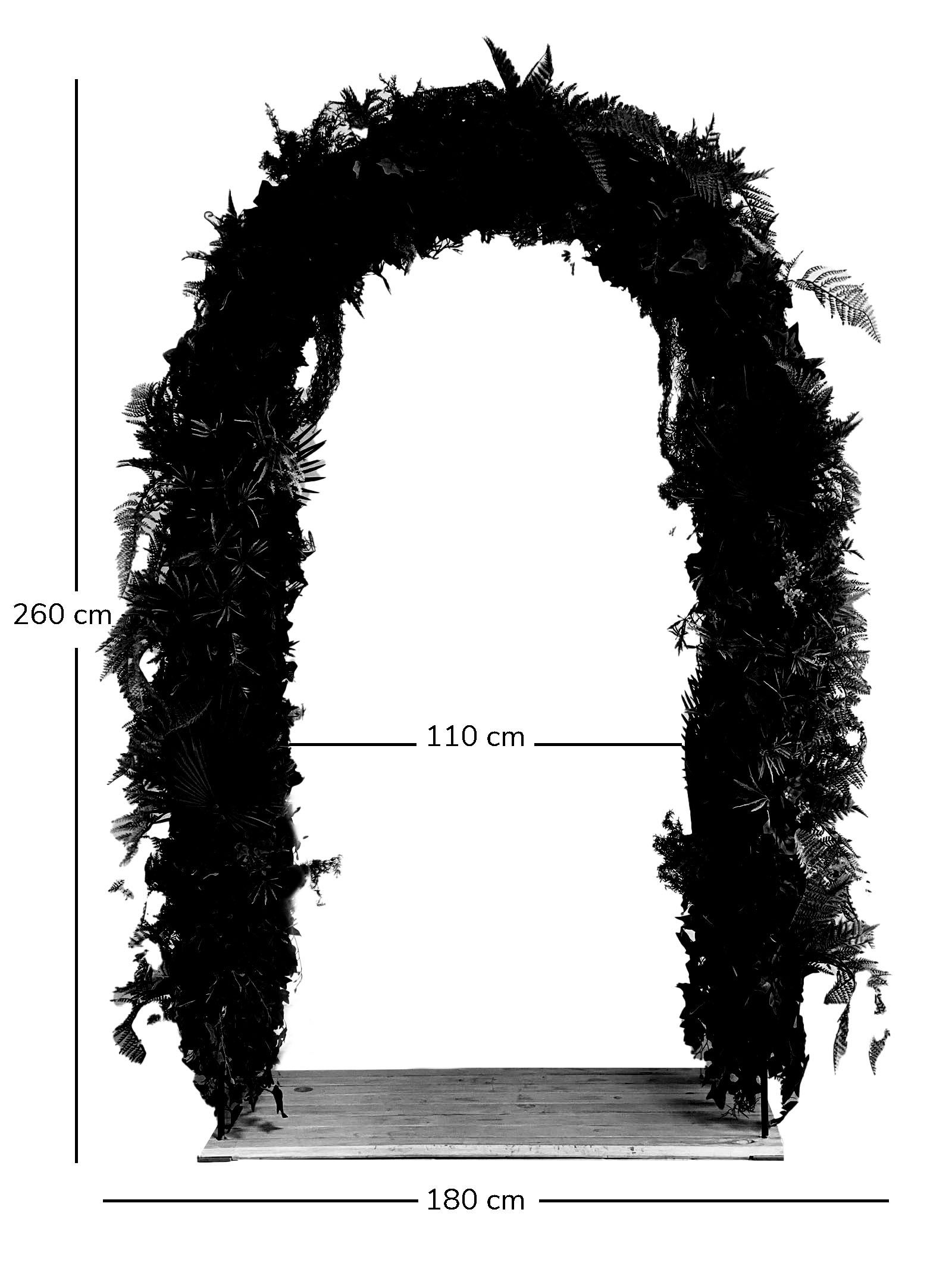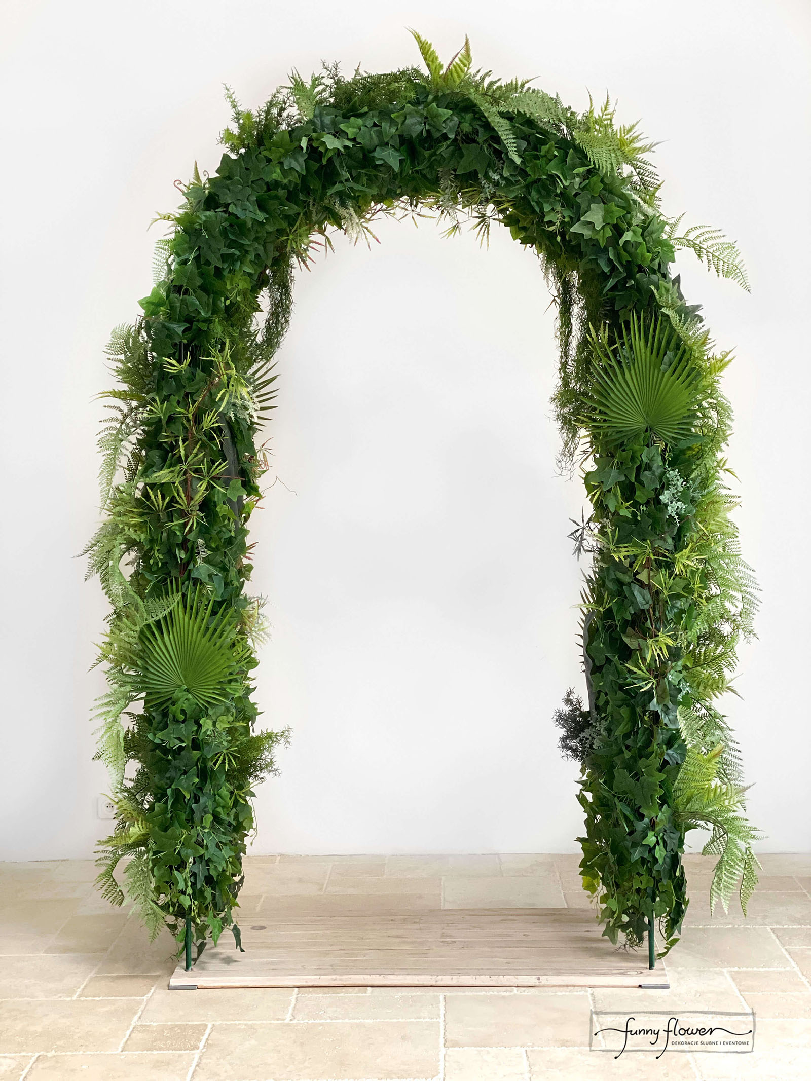 Łuk jest wykonany w całości ze sztucznych roślin.
